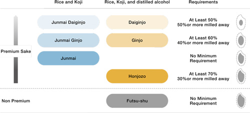 Sake grade levels are determined by the percentage of the rice that is polished before the brewing process In general, more the rice is polished, the higher grade sake is, and also more labor intensive and time consuming.