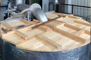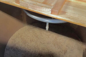 ▲糖化3日目のタンク。強い熱気と甘い麦茶の様な香りが立ち昇ります。ここからウォート(麦汁)を取り出し発酵槽へ移動させます。