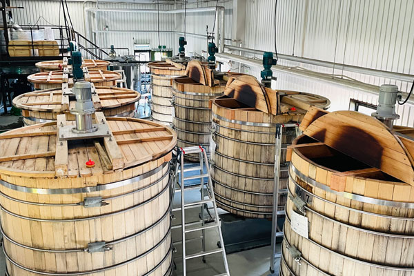 ここでは、世界的に珍しいミズナラを使用したオーダーメイドの発酵槽を使用。通常、発酵槽にはステンレス製、木材であれば杉や松が使用されるのですが、秩父蒸留所では日本の風土を取り入れる為ミズナラを使用しています。木材の利点は天然の菌が住み着く事。日本酒の蔵付き酵母と同様、菌類が住み着くことにより安定した発酵を得る事が出来ます。また、ミズナラを好む乳酸菌が住み着く事で、秩父の個性の一つへと繋がっていきます。