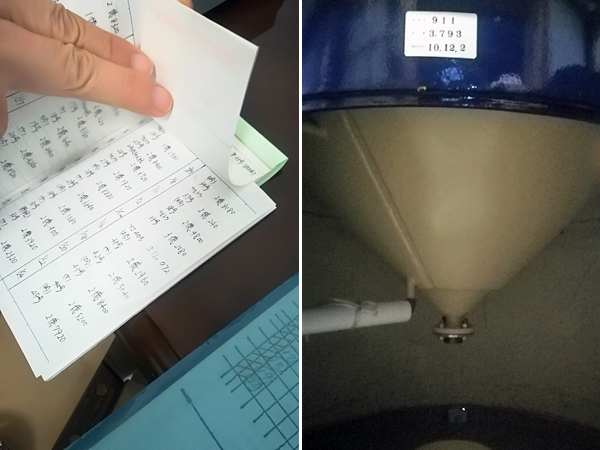 ▲酵母の数を数える/対流を生み出す特注タンク