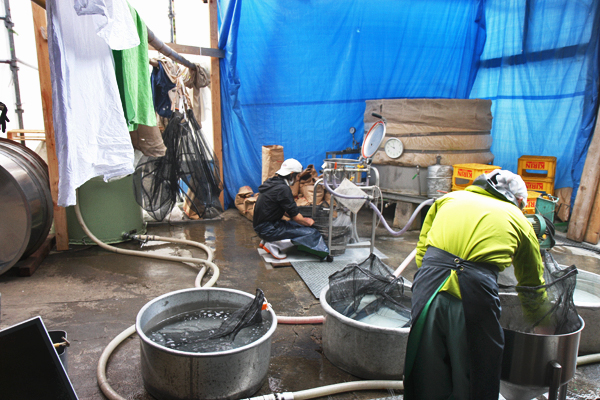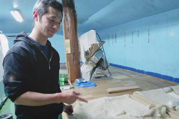 火災が発生した日、電気系統が使えなくなりました。麹室は無事だったので、真っ暗な状態になってしまった中でしたが麹の種切りを行ったそうです。壺坂専務を始め蔵人の方々は大変なショックを受けた事が察せられますが、諦めず酒造りを続けていることに逆に私たちが勇気づけられるようです。元気そうな壺坂専務の姿にほっとしました。