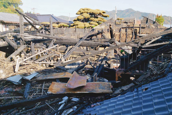 最初に杜氏の壺坂専務が煙の上がっているのを確認しましたが、なす術もなくあっという間に燃え広がったとのこと。燃えた築150年以上の歴史を持つ建物は県の景観形成重要建造物に指定されていました。そんな中で人的被害はなかったこと、火は蔵内で消火でき周辺の家には燃え移らなかったこと、そしてこれからの醸造に必要な設備に大きな影響がなかったのは不幸中の幸いだったとのことです。