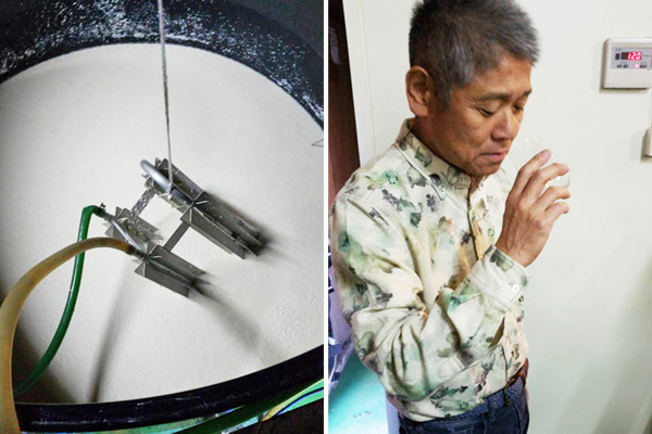 ところで、今期の播州一献の味わいは火災による影響は感じられず、むしろ、少しずつ酒質が良くなってきた近年の流れのまま、今期のお酒もより美味しくなったように感じます。これについて壺坂専務は、火災があっても無くても、蔵では1年に1つ、大きな改善に取り組むようにしているからだと思います、と話して下さいました。例えば今期は、これまで一度に沢山の量を洗米していた仲添・留添に用いる掛け米も、少量ずつ洗米機(MJP)で洗うようにしたそうです。普段と異なる状況にあっても、酒質向上を諦めず酒造りに取り組んでいるというお話をお伺いできました。