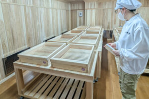 そんな「千歳鶴」の造りを担うのは、北海道釧路出身の市澤智子杜氏。微生物の世界に魅せられた市澤さんは、東京農業大学短期大学の醸造学科を卒業したのち地元・釧路の地ビール会社や道内の酒蔵で杜氏を歴任し日本清酒へ。創業以来初めての女性杜氏に就任し今年で9シーズン目。現在7名のスタッフとともに「千歳鶴」を醸しています。