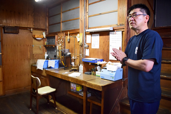 もともとは、明治14 年に望月酒造店として開業しました。その後、静岡県にゆかりのある徳川家康にあやかって、優れた君主=「英君」と名付けたそうです。蔵の所在地は山と海に挟まれた平地の少ない場所で、東海道の宿場町として古くから栄えていました。蔵はその土地の山側にあり、昨今度重なる台風や豪雨により土砂崩れも度々おきています。先日の台風24 号では長時間停電になり、明けてみれば蔵や土蔵の壁が剥がれたり、崩れたりしている場所もちらほら。歴史的建造物になっているので、易々と取り壊せない現状があります。さて、今回私がお伺いしたときは本格的に造りが始まる1週間前。造りに向けて器具の準備や清掃に勤しむ蔵人さんを目に留めながら、ゆっくりと蔵内を見せて頂くことができました。その蔵の設備を写真と一緒にご紹介していきます。