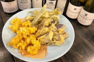 ―― 鱧や茄子の天ぷらにフーバーのヴァイサーブルグンダー、完璧に合うなぁ。旨味のある食材にピッタリ。酸もしっかりあるし旨味が広がるね。(安藤)