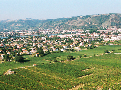 ローヌ地方はフランスの南東部に位置し、スイスから地中海まで流れるローヌ川の南北200キロに渡るワインの生産地です。ブドウの栽培地は、夏は暑く冬が寒冷な北部と、それよりも気温が高く温暖で雨の少ない南部に分かれ、それぞれ年間の平均気温が2℃ほど異なります。そのため栽培されている品種も大きく異なり、そのワインスタイルも変わってきます。北部はシラー、ヴィオニエ、マルサンヌ、ルーサンヌなど白黒両方のブドウが栽培されており、シラー単一か若干の白ブドウを混ぜて造られる力強い赤ワインや、ヴィオニエで造られる華やかな白ワインが有名です。