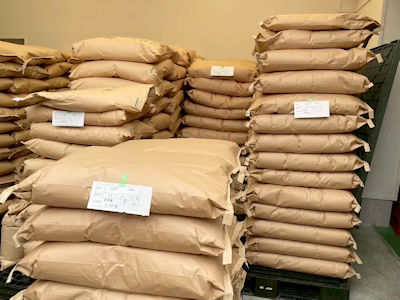▲(左)農家さんごとに精米された酒米 (右)10kgずつ、目的ごとに分けて管理されています