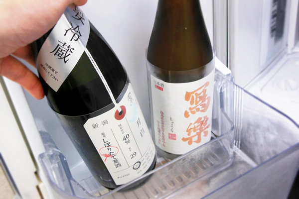 「日本酒は冷蔵庫で保管」、最近では大分定着してきました。もちろんはせがわ酒店でも、蔵元から届いた日本酒はすべて倉庫でも店舗でも冷蔵保管が基本です。生酒を除き、きちんと造られた日本酒は常温に置いたからといって、たちまち劣化するというほど弱いものではありませんが、冷蔵保存することで品質劣化を遅らせることができます。最近では、出荷前の蔵内での貯蔵をすべて0℃以下の冷蔵庫で管理する蔵も多く、本来の味わいを皆さんに届けたいという強い思いを持った蔵元の中には、冷蔵設備を持っている事を酒販店との取引条件の一つとしている事もあったりするほどです。ご家庭でも理想の保管場所は冷蔵庫です。残念ながらスペースが無い場合は温度変化が少なく、涼しくて暗い場所に保管し、なるべく早く飲むようにして下さい。