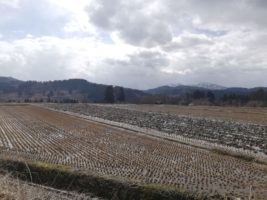▲『山城屋』で使うお米を栽培している田んぼ。遠くに山脈が見え、視界が開けて広々とし、日当たりがよく、常に風が吹いているとても気持ちの良い場所でした。