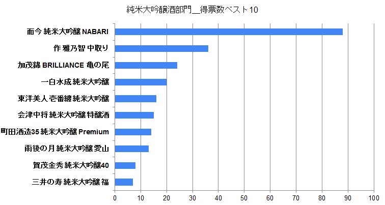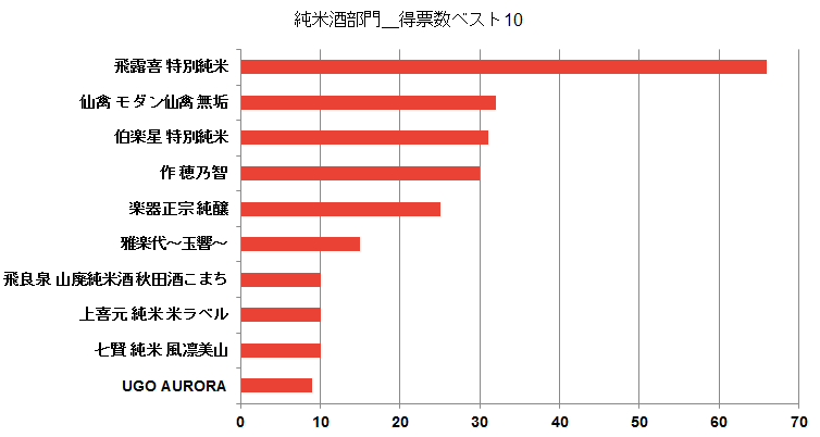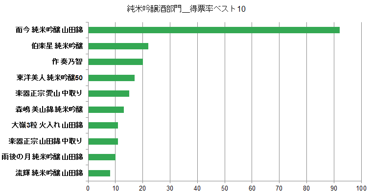 やはりオンライン店でも人気の「伯楽星」「」「東洋美人」は各部門で安定して票数を獲得していますね。また、ギリギリの追い上げで純米酒部門では「上喜元 純米 米ラベル」、純米大吟醸酒部門では「三井の寿 純米大吟醸 福」が予想ベスト10に入ってきました。是非こちらも飲んでみてください。