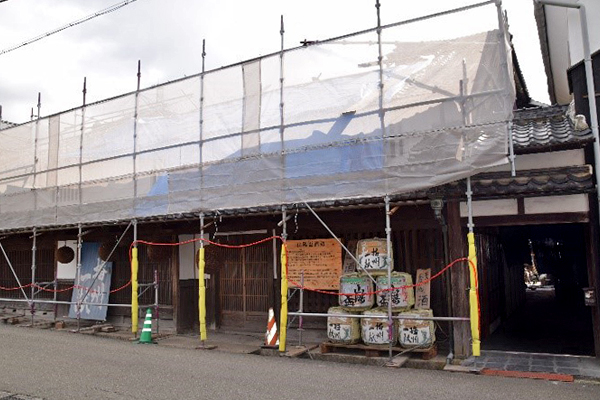 山陽盃酒造は江戸後期の1837年に創業した歴史ある蔵です。築150年の貴重な建物も現存しており、兵庫県から景観形成重要建造物の指定を受けています。焼け崩れたがれきの撤去作業が進む中、先ずは外壁を一番に復元していきたいの事です。外から見える所だけでも直す事で、周りの方に少しでも安心してもらいたいとの思いがあります。