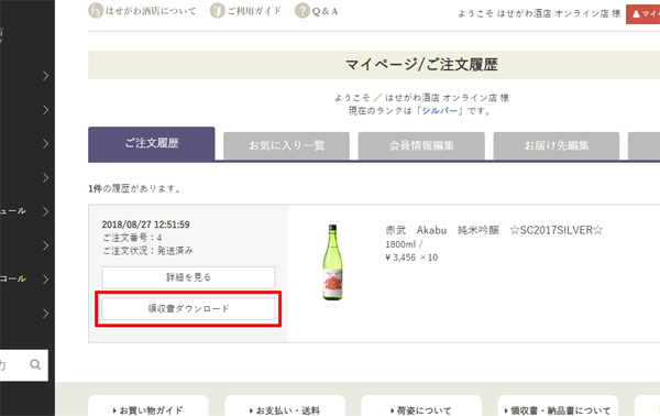 マイページのご注文履歴より「請求書/領収書」のダウンロードが可能です。適格請求書としてご利用下さい。誠に恐れ入りますが、商品出荷前の発行や分割発行、およびご注文の一部代金(商品代・送料など)や手書き、紙での発行は承ることが出来かねますので、あらかじめご了承下さい。