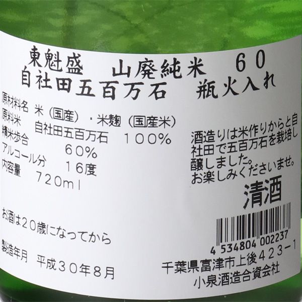 房総半島の伝統を守り、日々精進する蔵。寛政5年、1793年創業。千葉県の南部、千葉県富津市に蔵はあります。名字帯刀を許された小泉平蔵が、鹿野山の麓に位置したこの地に蔵を興しました。自社田で「五百万石」を育成しており、イノシシ、鹿、猿などの野生動物の被害と闘いながら酒米育成に積極的に取り組んでいます。代表銘柄「東魁盛」は華やかな香り系の吟醸酒からじっくり自宅で楽しめる純米酒まで、その味わいは非常に幅広いです。近年メキメキと腕を上げている蔵です。是非この機会にお試しあれ。