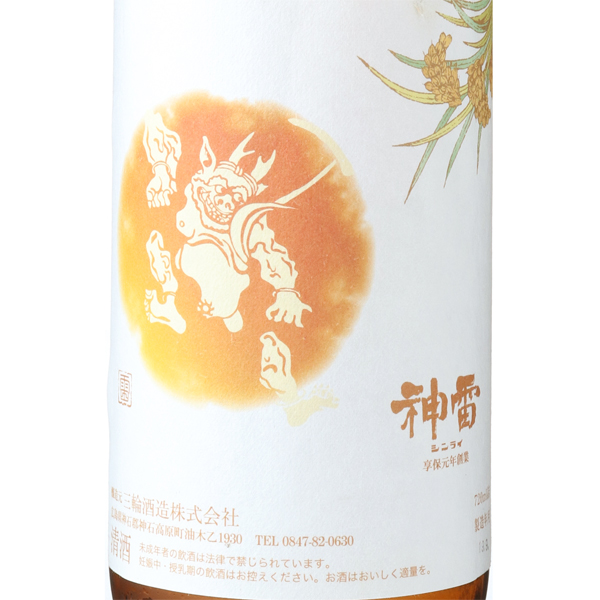 課せられた使命は、先人たちが築き上げた清酒という文化を伝承し、生活の潤いを、人生の喜びと悲しみを、共に味わっていくこと1716年創業。酒銘の神雷の由来はその昔雷が酒造蔵に落ちたが、大過なかったこと、また神石にあやかった事から。ちなみに稲妻は稲の妻と書くとおり、豊かな恵みをもたらす象徴であることから、大変縁起の良い名前です。酒蔵は中国山脈の山あい、標高500mに位置し、冬場は氷点下を記録します。さらに夏場も涼しいため、お酒の仕込、貯蔵共に大変適した環境が整っています。また、裏山の井戸から軟水、蔵の地下からは中硬水が得られ、用途によって使い分けが出来るのも特徴となっています。