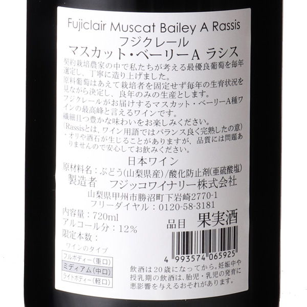 フジクレール ラシス マスカット・ベリーA 2018 / フジクレールワイナリー