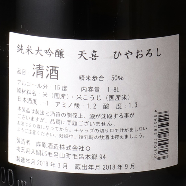 天喜 純米大吟醸 TENKI ひやおろし