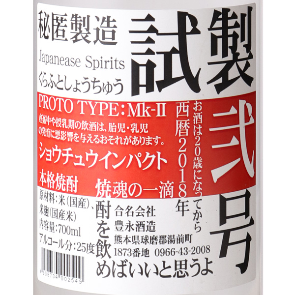豊永蔵 試製弐号 米焼酎25度 / 豊永酒造