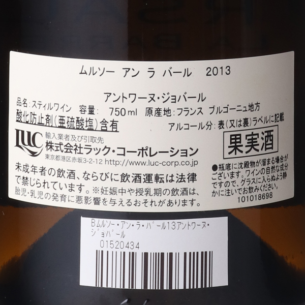 ムルソー・アン・ラ・バール 2014 / アントワーヌ・ジョバール