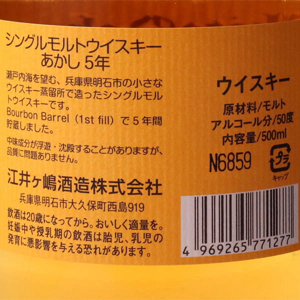 シングルモルト あかし バーボンバレル 5年 1st fill 50度 / 江井ヶ嶋酒造
