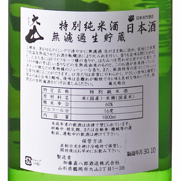 大山 特別純米 出羽の里 無濾過生貯蔵酒 なまちょ