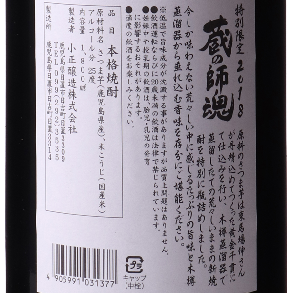 蔵の師魂 特別醸造2018 芋焼酎 25度 / 小正醸造