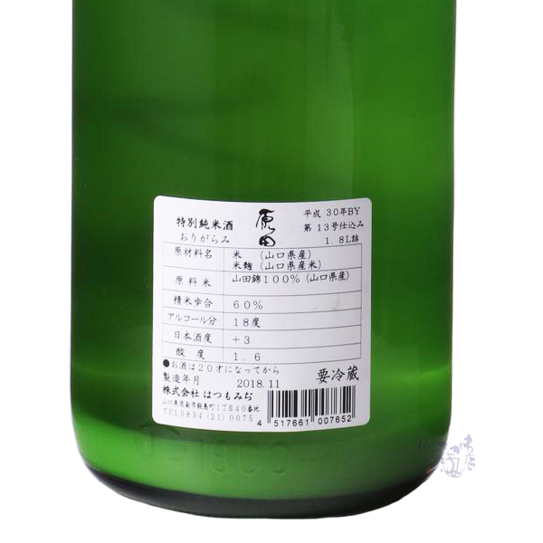 山口県産山田錦60%を使用。搾ったお酒をそのまま瓶詰め、香り高くすっきりとした味わいのお酒に仕上げました。蔵紹介