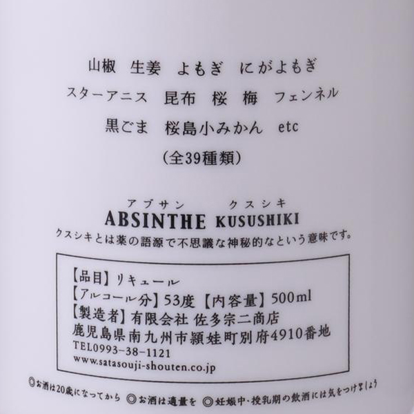 AKAYANE ABSINTHE KUSUSHIKI2018 53度 / 佐多宗二商店