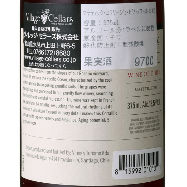 レッドチェリー、ブルーベリー、スパイスの香りが立ち、エレガントな果実味が柔らかなタンニンとともに広がる。太平洋岸に近く昼夜の寒暖差が大きいロサリオ・ヴァレーに位置するバイオダイナミック認証畑のブドウを用い、フレンチオーク樽で11ヶ月間熟成。蔵紹介