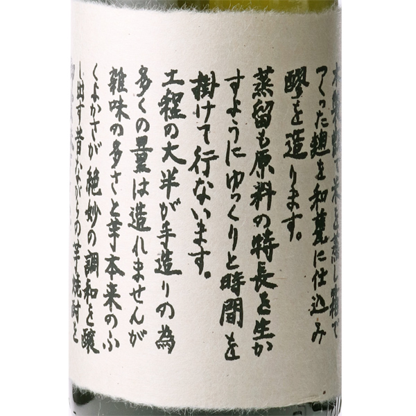 天草と島原半島の中間にある湯島で栽培された湯島芋を使用。この芋は島を囲む四方から吹く海風の影響で濃厚な甘味を特徴としてます。常圧蒸留、白麹にて造りました。蔵紹介