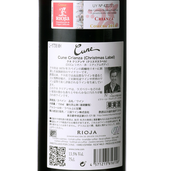 スペインの高級ワイン生産地として有名なリオハ。スペインで最初に電気の通った村の一つであるアロHaroにワイナリーを置くC.V.N.E.(クネ)社は、リオハ最大規模の生産者として、最高品質のぶどうを100%自社ワイナリーで醸造。また、グラビティーシステムを含む最先端の技術と設備のもと、歴史的価値を継承しつつも、極めてエレガントな「最高のワイン」を造り続けています。2004年にご成婚されたフェリペ皇太子の結婚式でも、フラッグシップワイン「インペリアル1994」がふるまわれる等、C.V.N.E.(クネ)社は、リオハを、スペインを代表するワイナリーです。醸造家チームのほとんどが女性で構成されているC.V.N.E.(クネ)社。若さ溢れるフレッシュな女性醸造家チームが、クラシカルな重厚感を残しながらも、エレガントでモダンな味わいを追求しています。