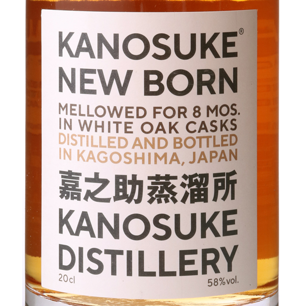 2018年2月に蒸溜したウイスキー原酒を樽詰めしてできたシングルモルトニューボーンです。原料にはイギリス産ノンピート麦芽を使用。ディスティラリー酵母で発酵させた後、初留釜で蒸留、その後、嘉之助蒸溜所が所有している構造の違う2基の再留釜のうち、ボディのある酒質を造ることができる構造の再留釜で蒸留を行いました。その原酒を樽熟成米焼酎「メローコヅル」が貯蔵されていたアメリカンホワイトオークの樽をリチャーした樽に樽詰、潮風が香る嘉之助蒸溜所の貯蔵庫にて8ヶ月間貯蔵後、カスクストレングスでボトリングし、甘く華やかなニューボーンに仕上げました。