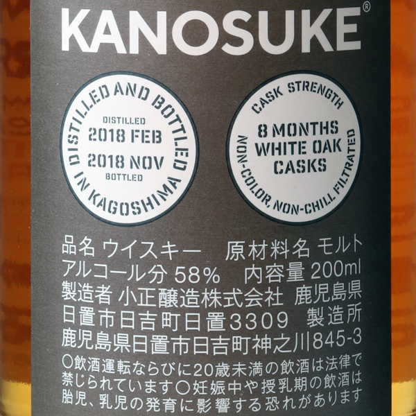 KANOSUKE NEW BORN 2018 / 小正醸造 嘉之助蒸溜所