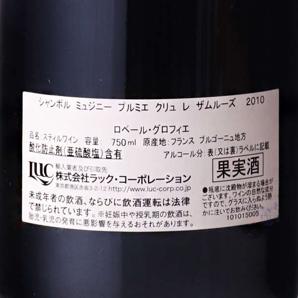 シャンボール・ミュジニー 1er レ・ザムルーズ 2010 / ロベール・グロフィエ