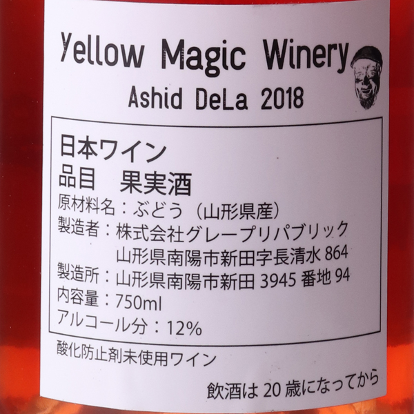 山形県南陽市産デラウエア100%使用。デラウエアの厚い果皮の特長を引き出すために、除梗破砕せずにタンクの中で足で踏み潰しました。 「Acid Techno」の「変調」のようにつくり手の踏み方によって生まれる、房のままと潰れたブドウの絶妙なバランスがこの「Ashid」シリーズです。 特にこのワインの原料となったデラウエアはとても果皮が厚く、その果皮の中から特徴的な「プラム」「梅」の香を感じ、そのニュアンスをそのままワインの味わいに表現しました。かなり色調もプラム色を帯び、また梗からのビター感が味を引き締めています。今から楽しめますが熟成させて全体を枯れさせても美味しいと思います。ワイナリー資料より