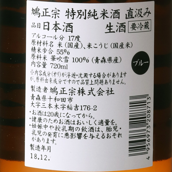 鳩正宗 特別純米酒 ブルー 直汲み 生