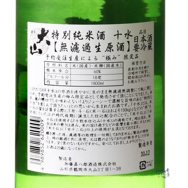 大山 特別純米 十水 無濾過生原酒 極 1800ml