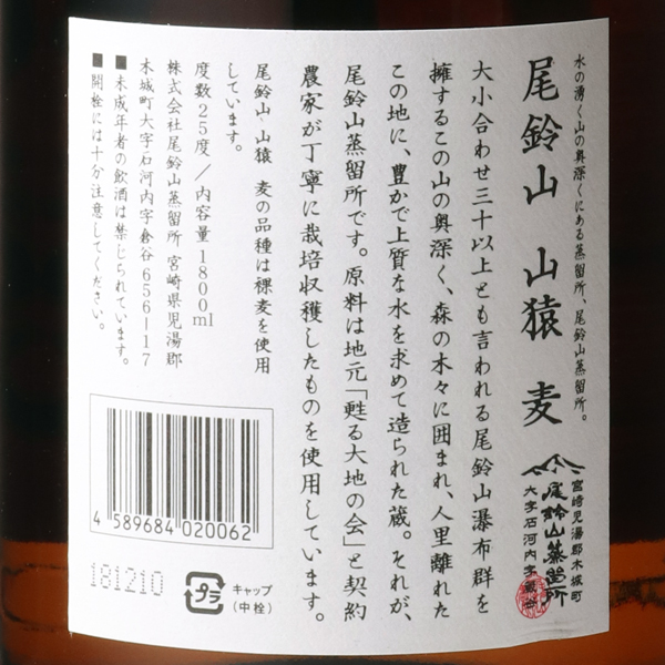 山猿 2年貯蔵 麦焼酎 25度 / 尾鈴山蒸留所