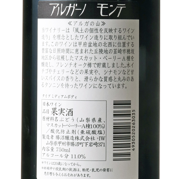 アルガーノ・モンテ 2021 2022 / 勝沼醸造