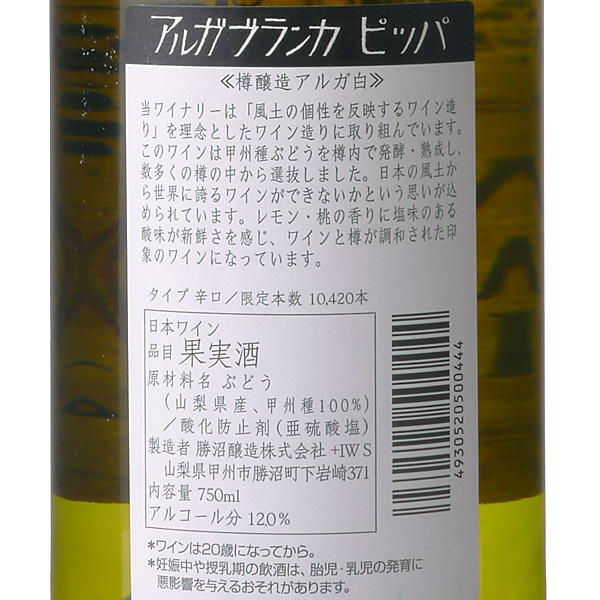 アルガブランカ・ピッパ 2020 2021 / 勝沼醸造