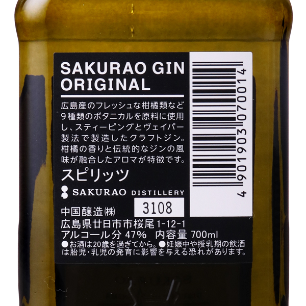 SAKURAO GIN オリジナル 47度 / サクラオB&D 桜尾蒸留所