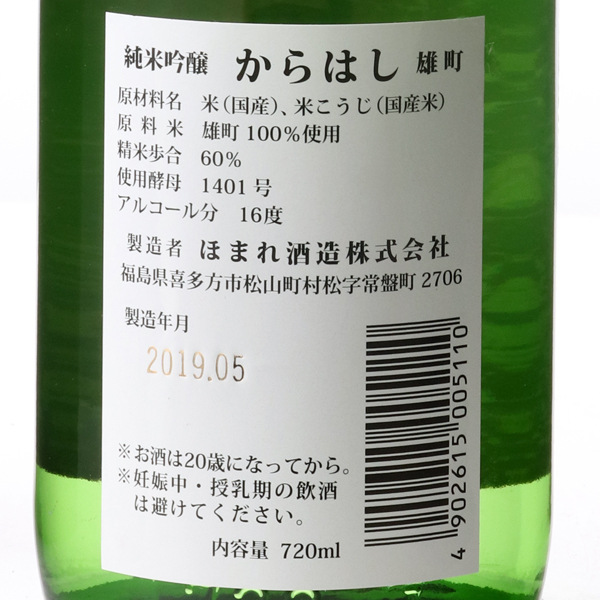 会津の「優美さ」と「しとやかさ」を現した酒米問屋から、味噌、麹製造業を営んでいた唐橋幸作氏が大正7年に酒蔵を譲り受ける形で創業。安定した品質と絶え間ない技術向上によって「会津ほまれ」は全国区で知られる銘柄へと成長しました。また2016年には日本酒としての品質を徹底的に追求する新ブランド「からはし」を立ち上げ、ほまれ酒造直伝の再現性の高い吟醸造りに加え、出荷直前まで-5°で徹底した温度管理を行う銘柄も造り出しています。果実の様に華やかな香り、甘みと酸味を優雅にまとった会津美人の様なそのお酒は国内外で高く評価され、名実ともに世界に誇る酒蔵へと成長しています。
