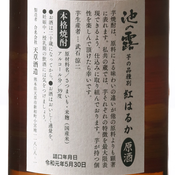 池の露 紅はるか 原酒 芋焼酎 39度 / 天草酒造
