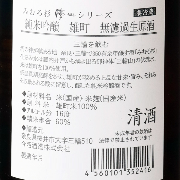 酒の神に見守られ醸されるお酒。酒の神が鎮まる日本最古の神社大神神社、その御神体である三輪山、日本最古の杜氏が祀られる活日神社のある三輪の地に蔵はあります。古の時代より深く結び付いてきた神、三輪、酒。その、他にはない歴史、風土、文化をバックボーンとして生まれたのがみむろ杉です。350年以上に渡って続くこの銘柄を現在支えるのは若手蔵元今西将之さんと、平均年齢20代の若いスタッフたち。