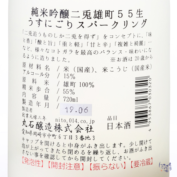 二兎 純米吟醸 雄町 五十五 スパークリング 生