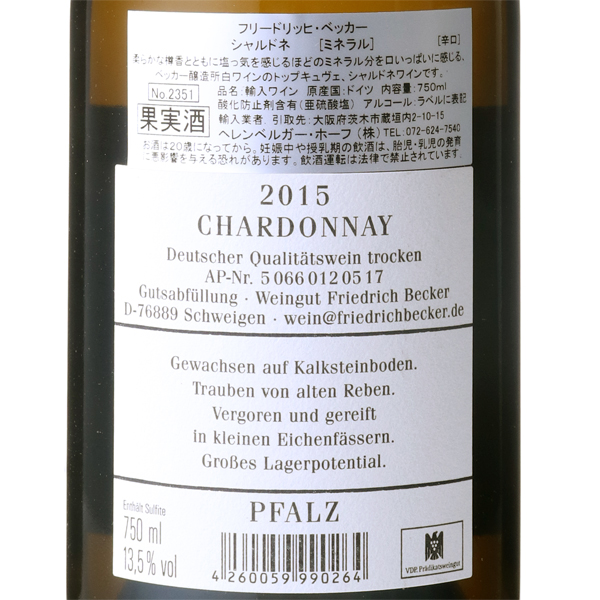シャルドネ ミネラル 2016 / フリードリッヒ・ベッカー