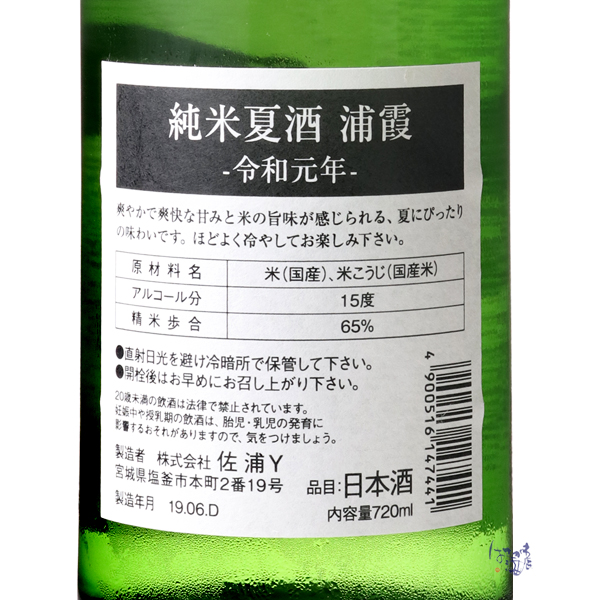 浦霞 純米 夏酒 令和元年 記念ラベル