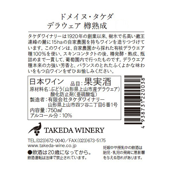 ドメーヌ・タケダ デラウェア 樽熟成 2021 / タケダワイナリー