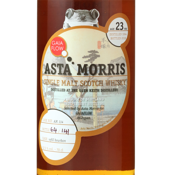 アスタモリスから、初の日本向けボトルが誕生。富士山の世界遺産登録を記念してリリース。歌川広重が描いた東海道五十三次をモチーフにしたラベルデザインです。オランダの「Passion for Whisky」とのシェア。リフィルのバーボン樽で23 年熟成させた長熟グレンキースです。