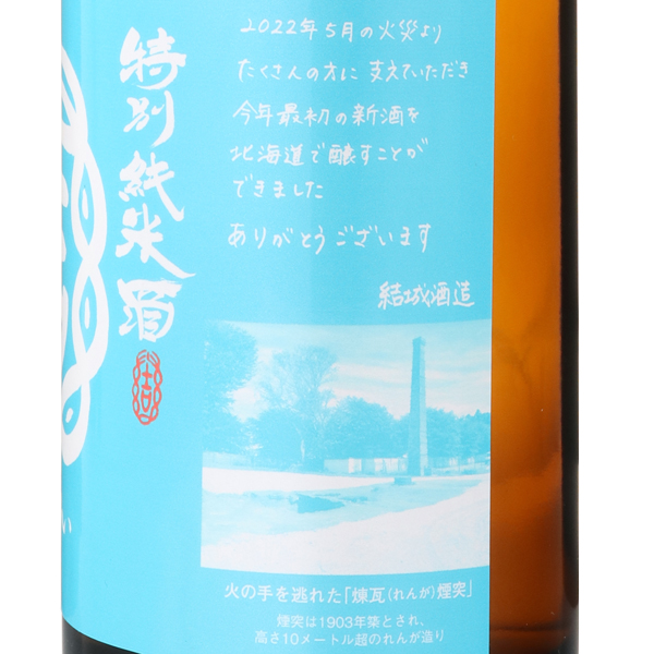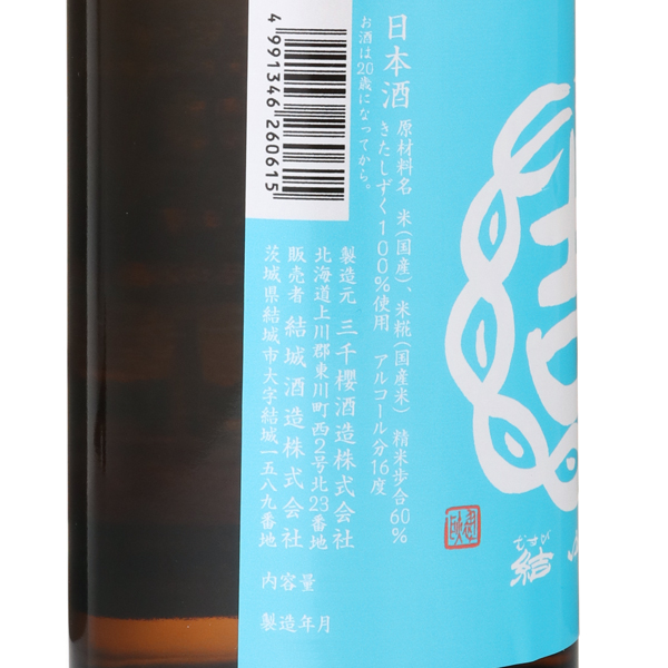 北海道新十津川産のきたしずくを結城酒造で醸していた同一の酵母と種麹を使用し、北海道大雪山系の伏流水で仕込みました。搾りたてのお酒をそのままの状態で瓶詰めしています。北海道の仕込水のクリアさの中に、結城酒造らしい芳醇さを表現しています。蔵紹介